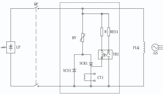 As can be seen from the diagram, by adding SCS1 and SCR1, the RV nonlinear resistor is turned off under normal operating conditions, limiting the leakage current. The selection of R and RES1 is determined based on the calculations of the overvoltage set value.